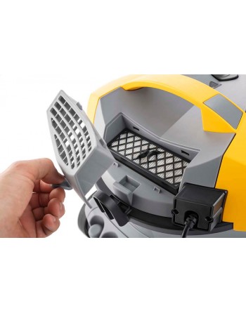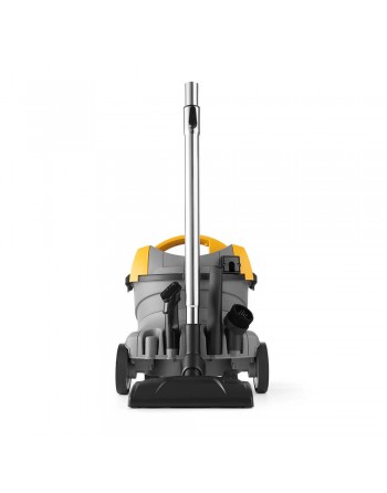 Kompaktowy i zwrotny, profesjonalny odkurzacz do pracy na sucho zapewnia doskonałą wydajność dzięki wysokowydajnemu silnikowi ssącemu o mocy 800 W. Obrotowe przednie koła oraz stałe tylne koła o dużej średnicy gwarantują maksymalną zwrotność i stabilność podczas pracy. Ergonomiczny uchwyt oraz systemy mocowania akcesoriów i kabla zapewniają wysoki komfort użytkowania. Kompaktowe wymiary i niewielka waga sprawiają, że urządzenie idealnie sprawdza się podczas sprzątania małych i średnich powierzchni, takich jak hotele, biura czy sklepy.